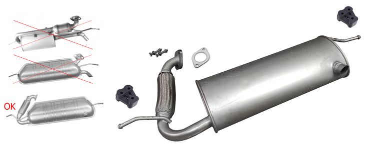 nür für Abgasnorm: Euro 5 (für Fahrzeuge mit Katalysator am Auspuffkrümmer) nür für MHD (micro hybrid drive) Prüfen Sie vor dem Kauf, wie Ihr alter Schalldämpfer aussieht. Sehen Sie sich unser Foto an. |